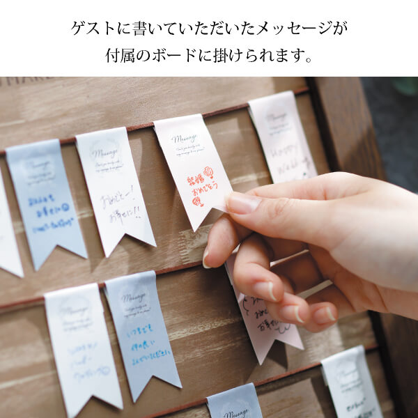 プチギフトも付いてメッセージボードにもなる、おしゃれなウェルカムボード ゲストを最初に迎え入れるウェルカムボード、お見送りの際にお渡しするプチギフト。そして今日という大切な日をメッセージに込めて一生残したい。大切な日の想いや願いが一つに…