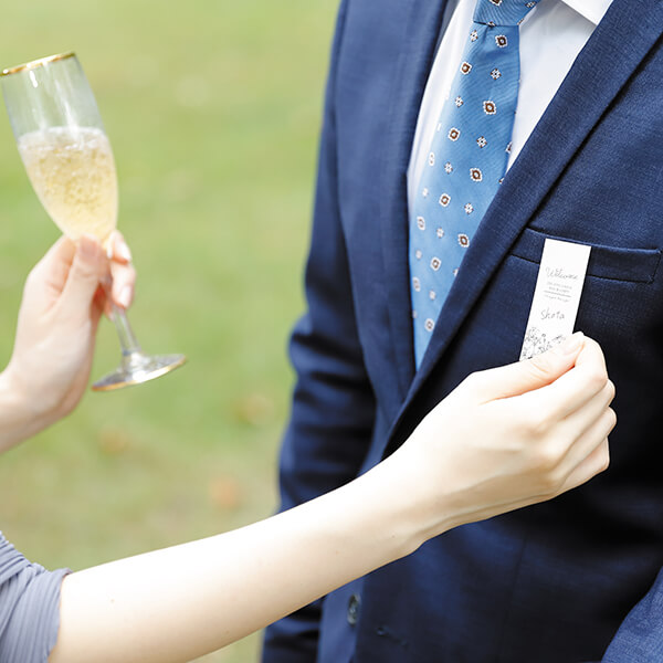 お見送りの際にプチギフトを新婦から、サンクスカードを新郎から贈るのも◎