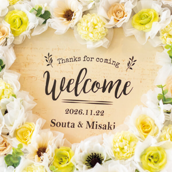 PIARYでウェルカムボードまたはウェルカムボードにもなるプチギフトをご購入いただいた方に無料プレゼント!受付で必須の「受付サイン」は全23種類のデザインからお好きなデザインをお選びいただけます。