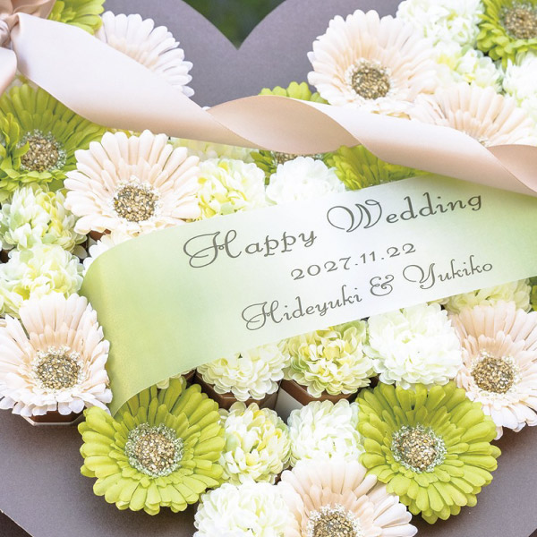 二人の特別な1日のために集まってくれたゲストの方々に、華やかなお花とクッキーで、ハッピーのおすそ分け。