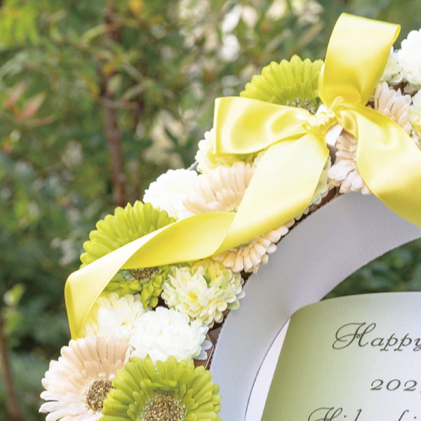 二人の特別な1日のために集まってくれたゲストの方々に、華やかなお花とクッキーで、ハッピーのおすそ分け。
