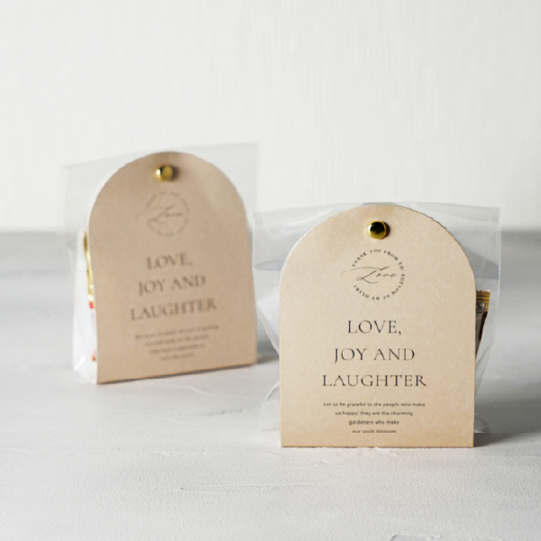 心の込もったメッセージが印字された素敵なカードを添えてより丁寧な印象に。裏面には手書きでメッセージも書けます♪