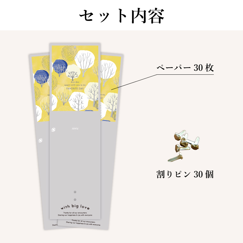 | 内容物 | ・ポーリーペーパー×30枚 ・割りピン×30個 |