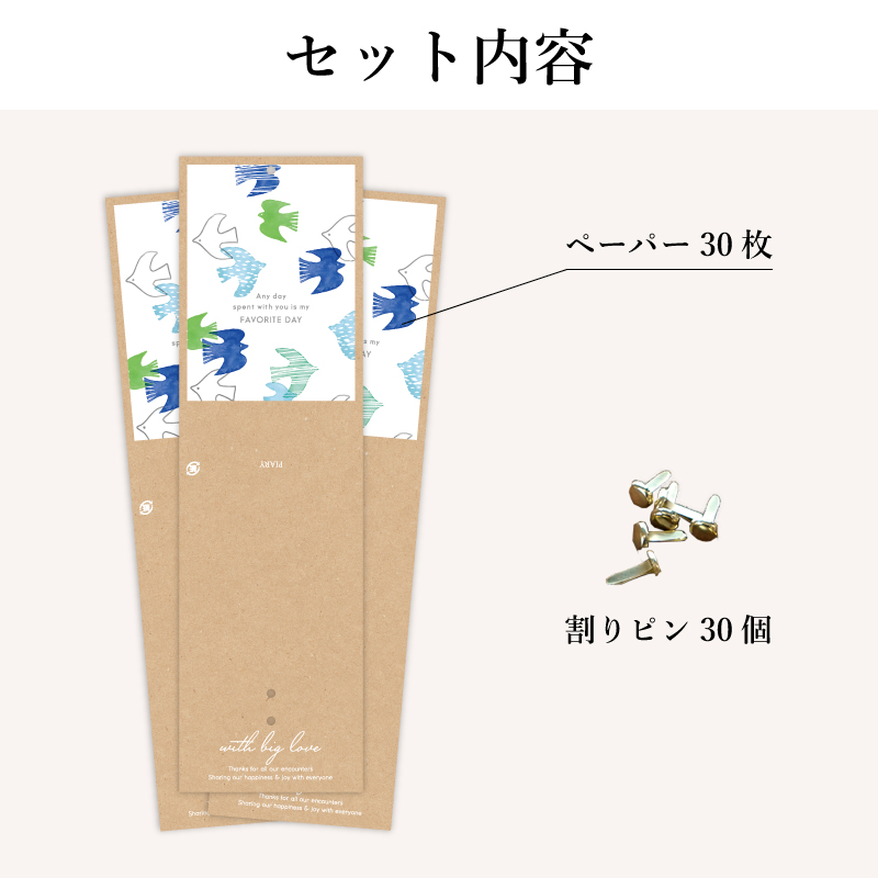 | 内容物 | ・ポーリーペーパー×30枚 ・割りピン×30個 |