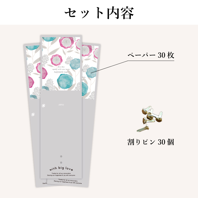 | 内容物 | ・ポーリーペーパー×30枚 ・割りピン×30個 |