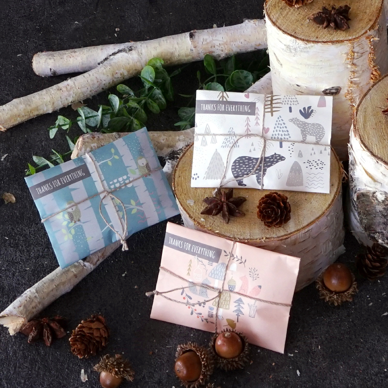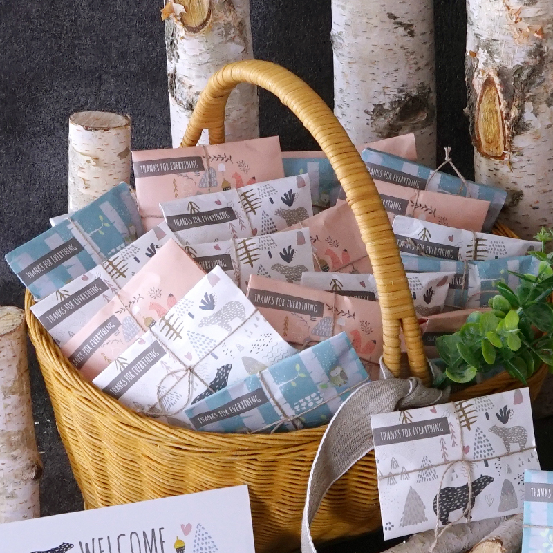 北欧の自然豊かな森や動物たちをモチーフにした、ナチュラルテイストの可愛らしいラッピングキット。
