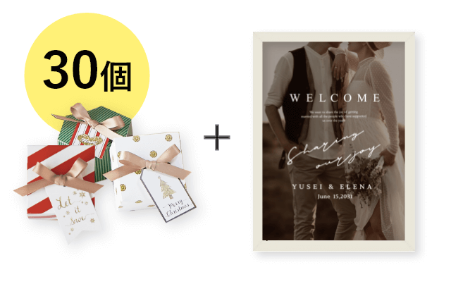 PIARYでプチギフトを20個以上購入で、いずれか1つ無料プレゼント!お写真や挙式日・名前が入るので、つけるだけでおふたりにしか作れないオリジナルプチギフトに早変わり!!
