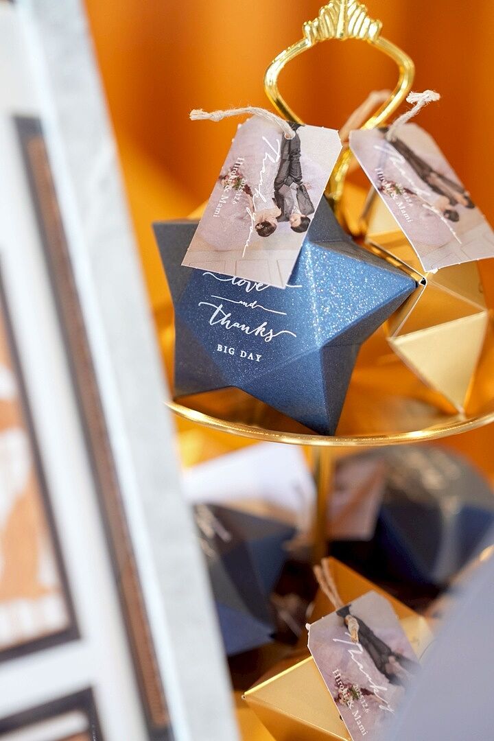 星降る夜に挙げるナイトウェディングやスターモチーフのウェディングはもちろん、クリスマスウェディングの雰囲気にもぴったりのプチギフトです。星×ゴールドと星×ネイビーの高級感のあるパッケージ!ネイビーはキラキラのラメが輝いてとてもキレイです。