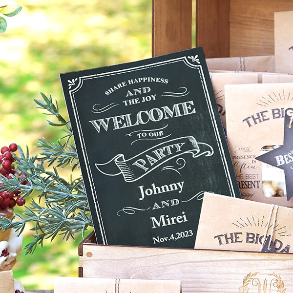 PIARYでウェルカムボードまたはウェルカムボードにもなるプチギフトをご購入いただいた方に無料プレゼント!受付で必須の「受付サイン」は全23種類のデザインからお好きなデザインをお選びいただけます。