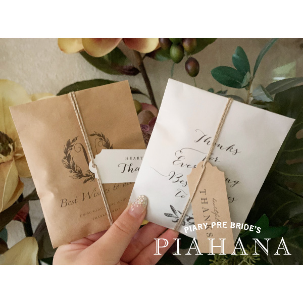 PIARYでプチギフトを20個以上購入で、いずれか1つ無料プレゼント!お写真や挙式日・名前が入るので、つけるだけでおふたりにしか作れないオリジナルプチギフトに早変わり!!