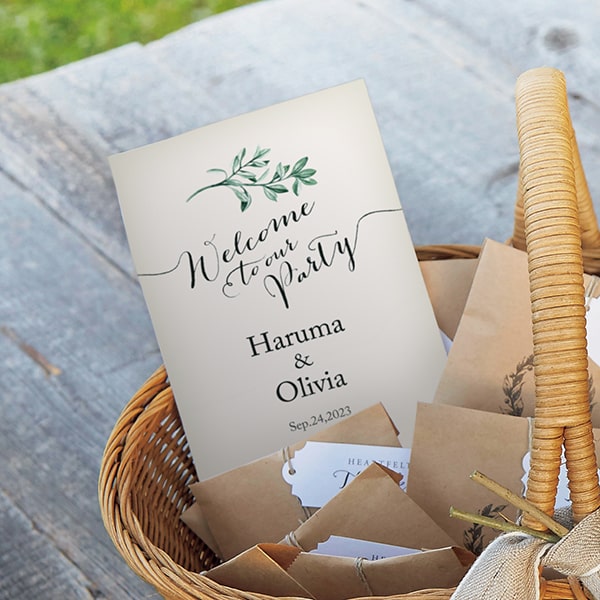 PIARYでウェルカムボードまたはウェルカムボードにもなるプチギフトをご購入いただいた方に無料プレゼント!受付で必須の「受付サイン」は全23種類のデザインからお好きなデザインをお選びいただけます。