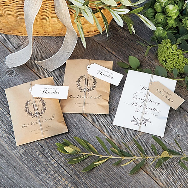 心の込もったメッセージが印字された素敵なカードを添えてより丁寧な印象に。裏面には手書きでメッセージも書けます♪