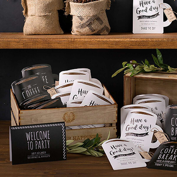 届いた品も写真そのままの可愛さで、式場の雰囲気にもバッチリ合っていました。また、多めに注文したためいくつか余りましたが、コーヒーなので苦なく消費できるところも良かったです。
