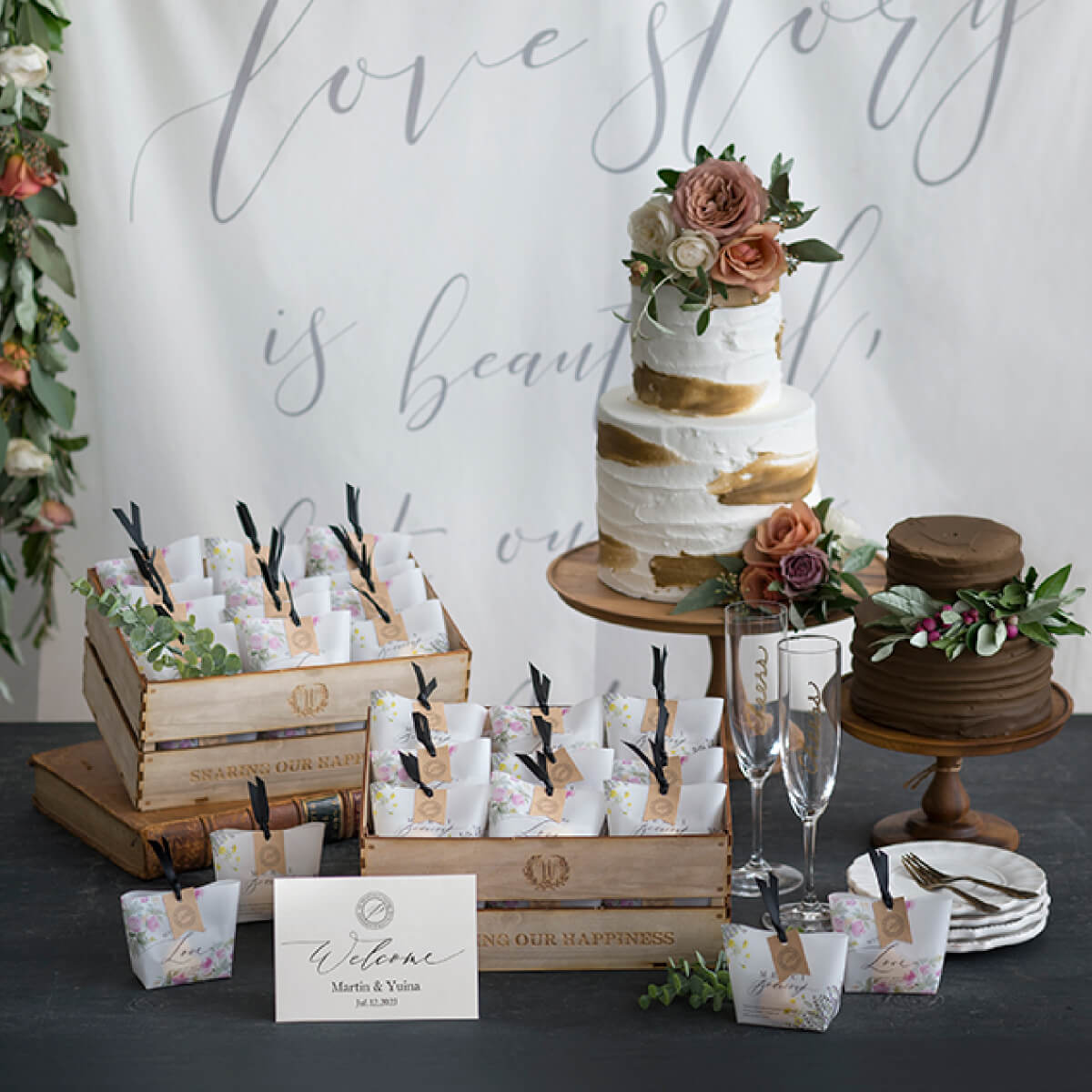 海外ウェディングのトレンドを盛り込んだ、おしゃれすぎるプチギフトはプレ花嫁さまに大人気。