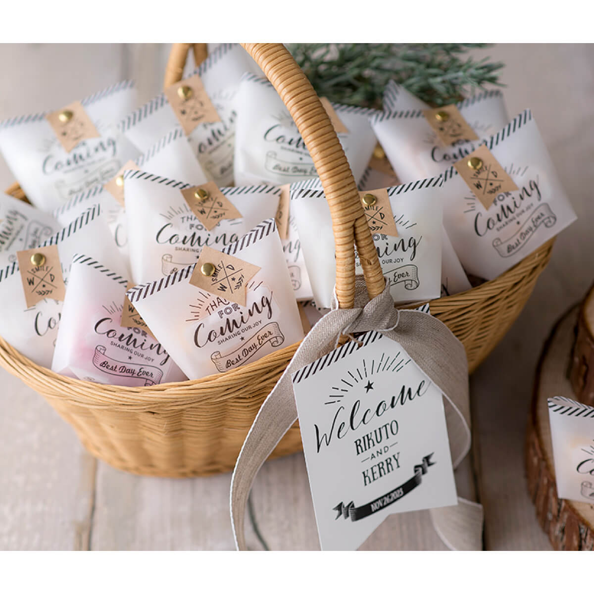結婚式のプチギフトとして購入させて頂きました。 見た目もとっても可愛いし、甘い匂いもいい!! タグの付け替えをしてるときにたべたくなりました。 ゲストの方も可愛いと喜んでくれて嬉しかったです。 これにしてよかったです!! ありがとうございました!