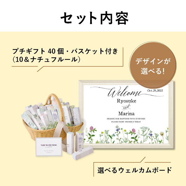 【送料無料】プチギフト&ウェルカムボードセット(10&ナチュフルール40個+バスケット)|プチギフトならPIARY(ピアリー)