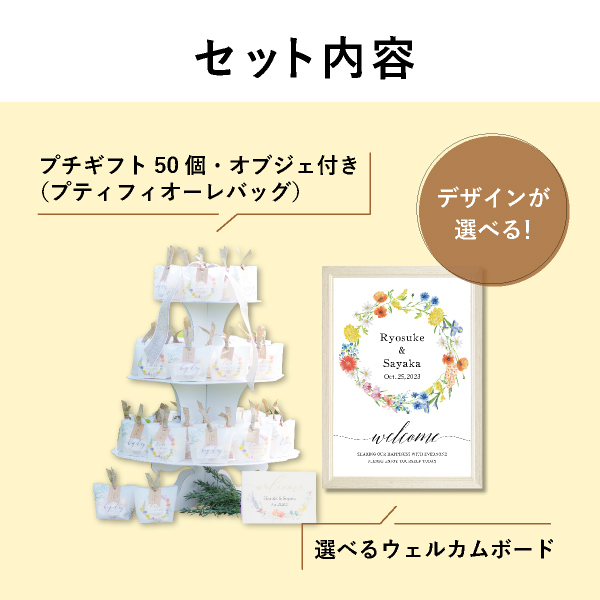 【送料無料】プチギフト&ウェルカムボードセット(プティフィオーレバッグ50個+オブジェ)|プチギフトならPIARY(ピアリー)