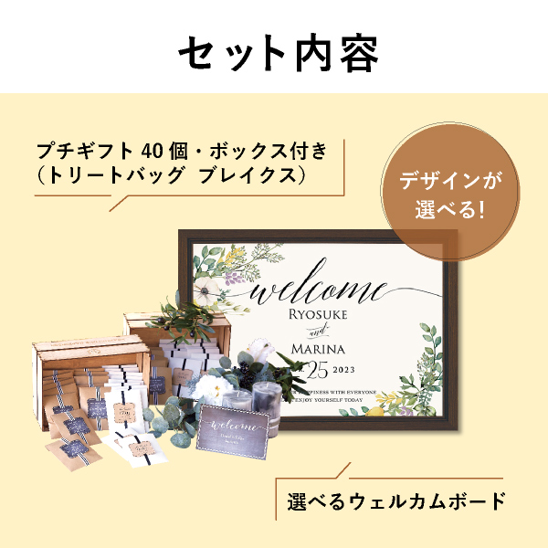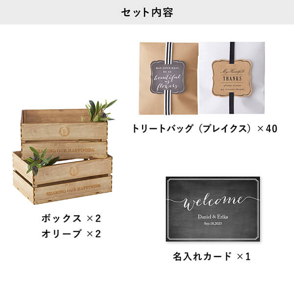 【送料無料】プチギフト&ウェルカムボードセット(トリートバッグ(ブレイクス)40個+ウッドボックス)|プチギフトならPIARY(ピアリー)
