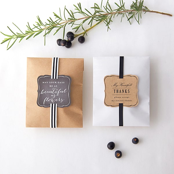 無料でついてくるサンクスタグ・カード・シールを使えば、おふたりにしか作れないオリジナルプチギフトに早変わり!