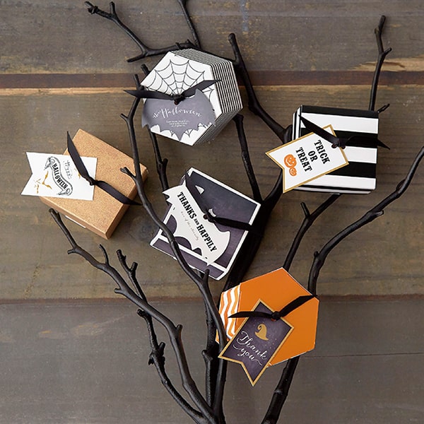 ハロウィンにぴったりの柄と、気分が盛り上がるタグがオシャレなプチギフト。