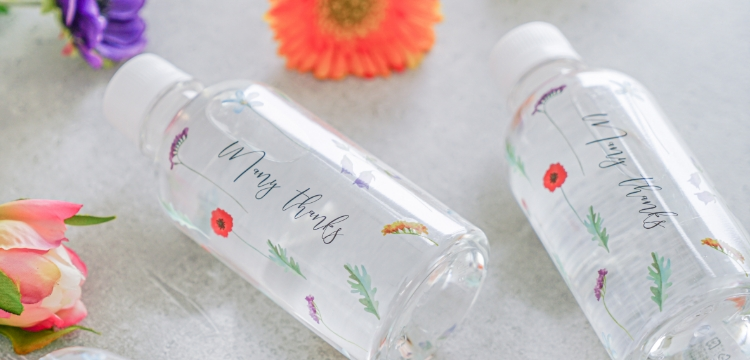 結婚式のプチギフトはもちろん、会社やサロンで提供するドリンク、イベントのノベルティ、キャンペーンの販促物など、広いシーンでお使いいただけます。