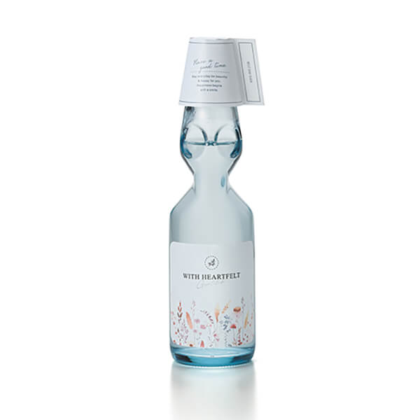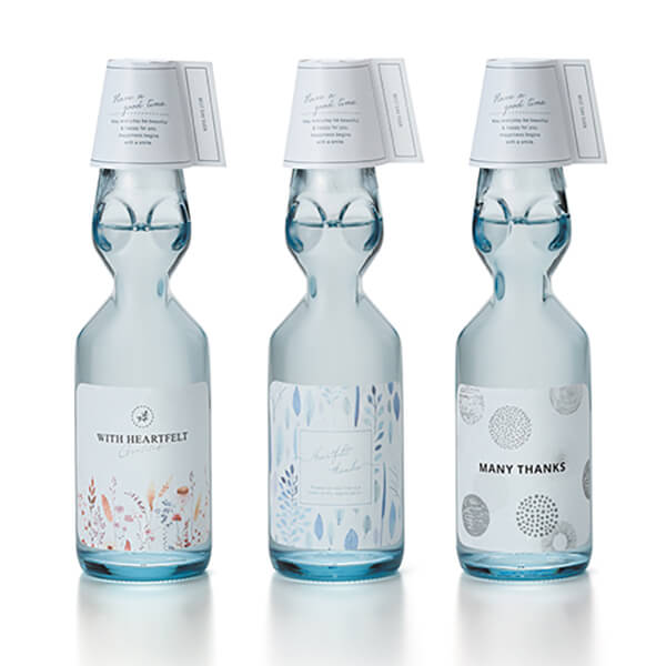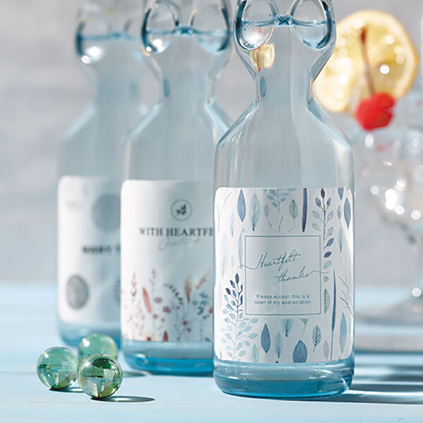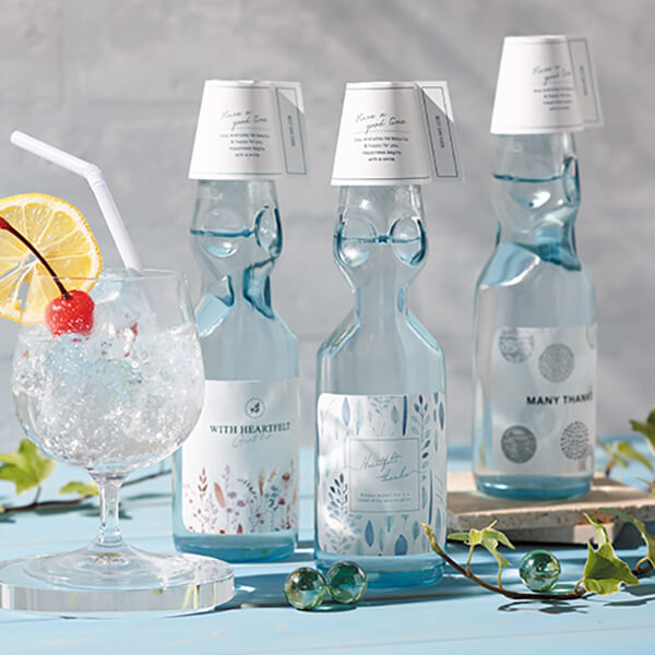 清涼感溢れる爽やかなボトルでラムネならではのスッキリとした甘さと喉ごしです。