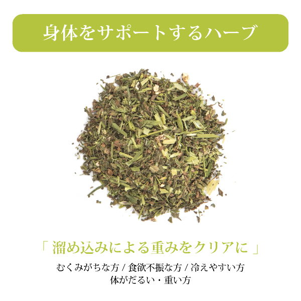 ダンデライオンが水分代謝を促してむくみを緩和するようサポートします。