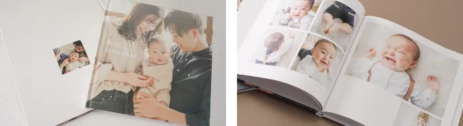 とお悩みのパパママに大好評!ハイクオリティの品質のアルバムが写真を選ぶだけで簡単に作れます!
