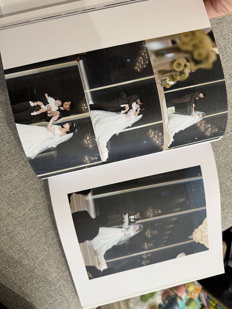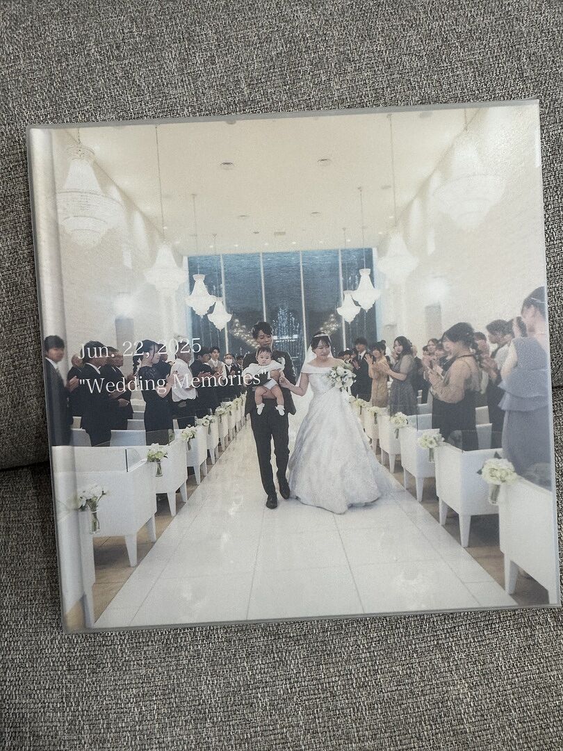 想い出写真や前撮り写真など本当にたくさんあるので、写真整理も兼ねて楽しく作成出来ました!写真が多い方にはほんとおすすめだなって思います。今おうちのリビングに飾っています!