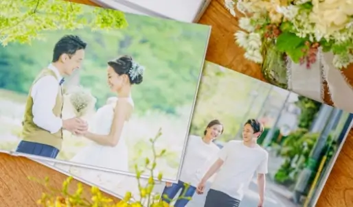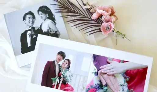 最近は、シンプルで落ち着いたデザインや、ふたりの物語が自然に伝わるような構成が人気です。くすみカラーやマットな表紙、モノクロ写真のレイアウトなど、やわらかな空気感を大切にしたスタイルが選ばれています。流行をちょっとだけ取り入れながら、自分たちらしく心地よく感じられる一冊を選ぶのがポイントです。