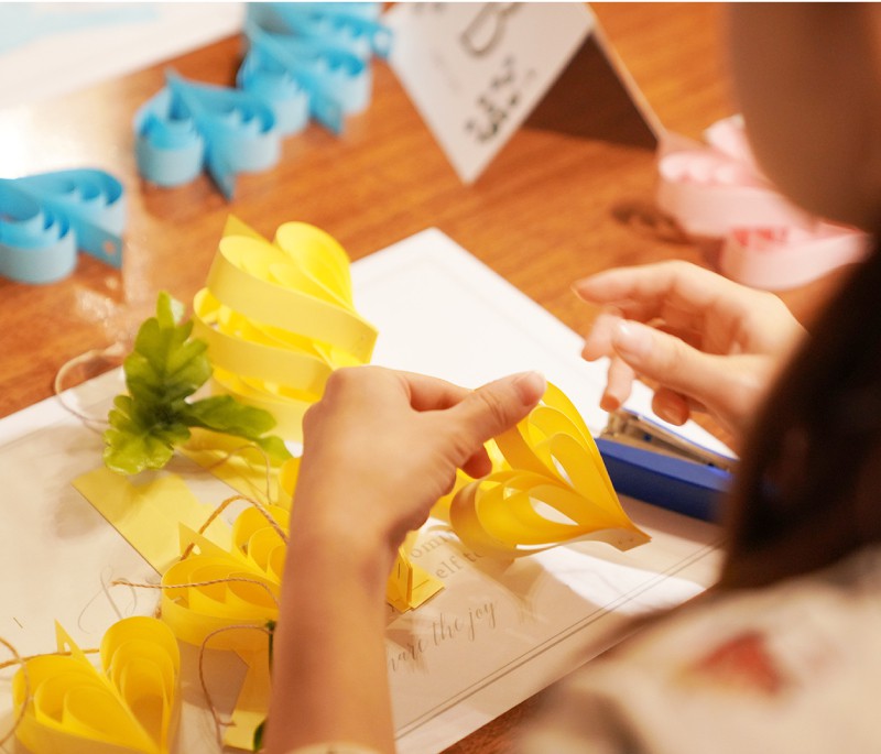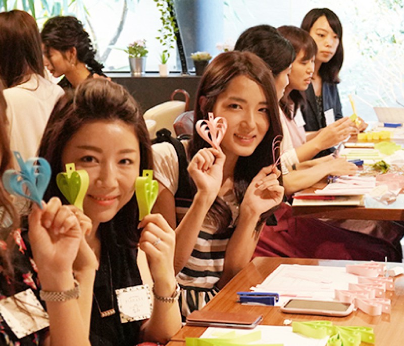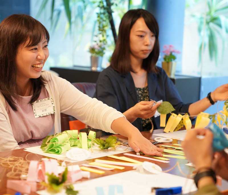 ワークショップは今回のピア花会が初となるペーパーハートガーランド作り!なんとこのハート、細長く切り取った紙を先端で固定するだけで簡単に作れちゃうんです♪完成した可愛らしいガーランドを持って皆さま一緒に記念撮影!