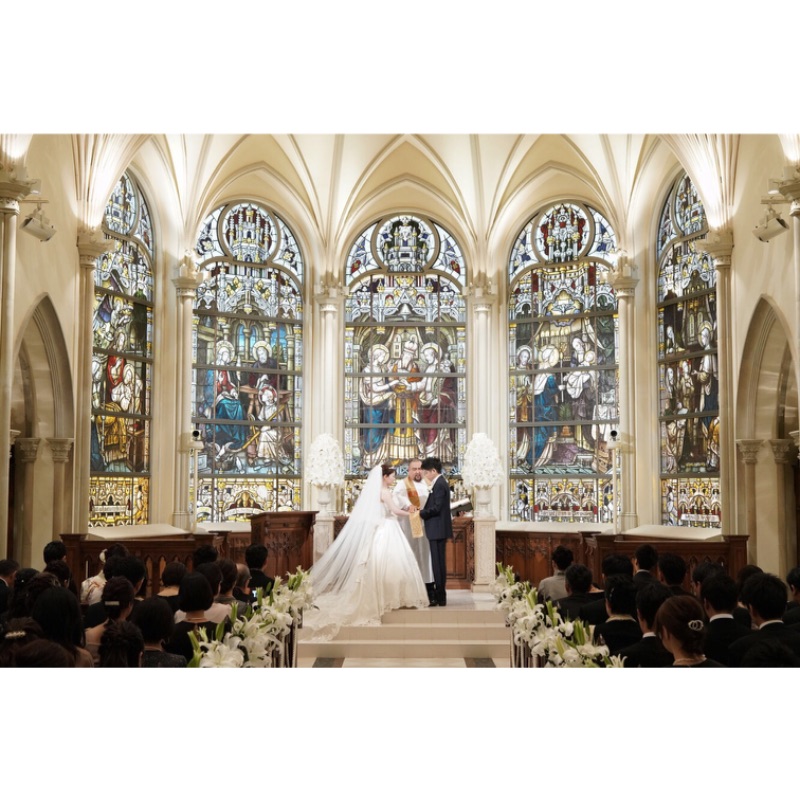 憧れのステンドグラスに囲まれた〈青山セントグレース大聖堂〉で王道Wedding♡