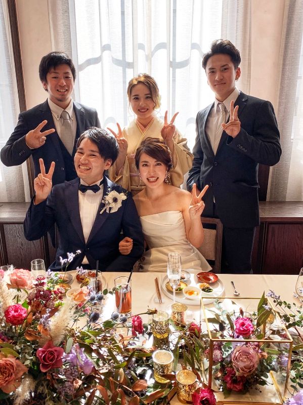 「smile」をテーマに<br>日頃からの感謝をゲストへ伝えるべく、自分たちにスポットを当てるのではなく、みんなが笑顔になれるような式を目指しました。<br>ゲストカードの代わりにウェディングスマイルを行ったり、余興は身内ネタにならないように<br>みんなで楽しめる物にしたり工夫しました。