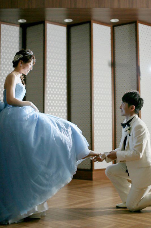 結婚式のテーマはシンデレラでした。<br>シンデレラになることが夢だったので、お色直しの登場はシンデレラの『夢はひそかに』のBGMに乗せてダンスをしました。<br><br>階段を降りたあとは旦那様からまさかのサプライズ。シンデレラの靴をいただきました!<br>仙台住まいですが一人でディズニーランドへ行き、この日の為に買ってきてくれたとのアナウンスが流れ、ゲストの方々から悲鳴が漏れました!!(笑)