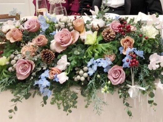 アットホームでお食事会のような雰囲気をテーマに構成を考えました。<br>構成は、以下のような感じ^^<br>挙式リハーサル→ロビーに降りて迎賓→挙式→フラワーシャワー、バルーンリリース→披露宴(ウェルカムスピーチ→乾杯→ゲスト卓周り(フォト、歓談、ハートドロップス回収)→ケーキ入刀、ケーキバイト→ケーキ配布→歓談→電報→謝辞→退場→エンドロール)→送賓!<br><br>立ちっぱなしの時間が多く、とても忙しかったですが、ゲストとたくさん話せて素敵な式になりました。<br>卒花嫁さんには、アイデア満載だねと、プレ花嫁さんには、今まで見たことないすごくいい式で真似したいと、褒められて嬉しかったです。