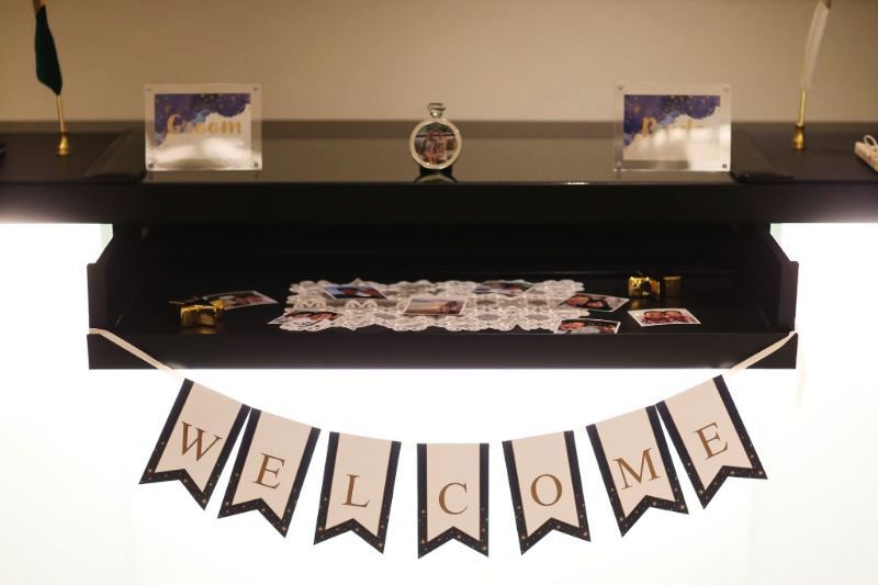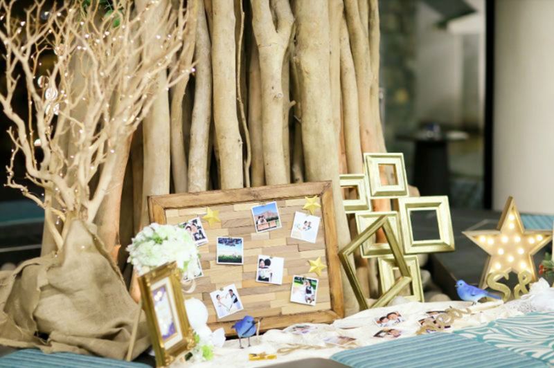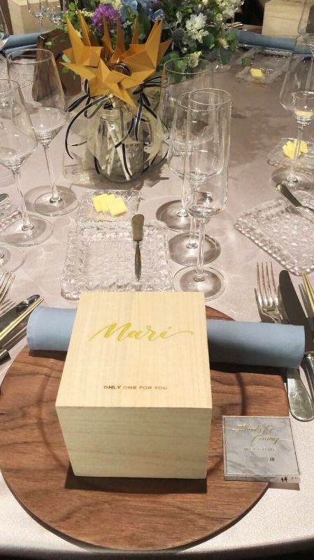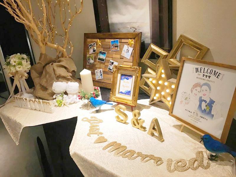 星空と自然がテーマのナイトウェディングでした。<br>披露宴会場に大きな木があるので、雰囲気がもともと出来上がっていてとても素敵でした。<br>アクセサリーはティアラ、ネックレス、ヘッドアクセなど、ほぼすべて母の手作りです。<br>一生の宝物になりました。<br>ウェルカムスペースのものも、ほとんどDIYにこだわって夫婦で作成しました。<br>