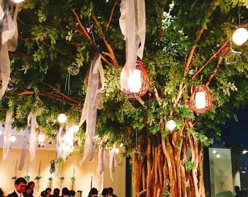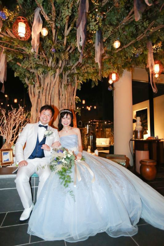 天空の教会で夜空のナイトウェディング★からの巨大樹の下でのウェディングパーティー
