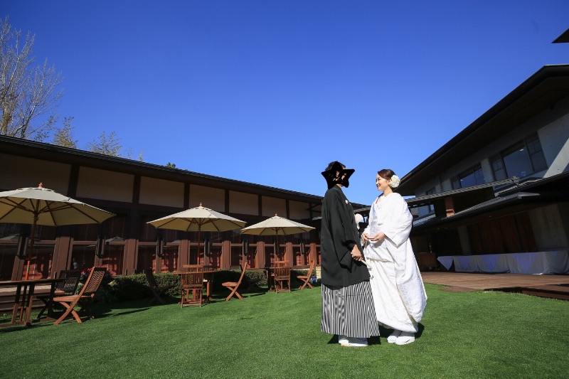 岩崎台倶楽部グラスグラスで芝生が素敵な和風ウェディング