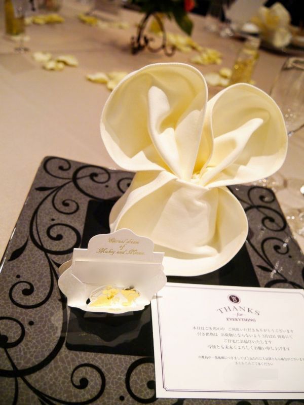 ディズニー(隠れミッキー探し)、おもてなしの心を持って、ありがとうを伝えたい。<br>この3つを考えました。<br>お開き後に新郎側のゲストから「ディズニーに来たみたいだった!」と言ってくれました。<br>料理ではアレルギーだけでなく好き嫌いにも対応して貰えるようにお願いしたので、みんなから「美味しかった!完食したよー!」と言われました。<br>またデザートブュッフェも好評でした。<br>お子様ゲストも多かったのでプレゼントやキッズスペースの用意、妊娠中の友人にはクッションやブランケットを用意しました。