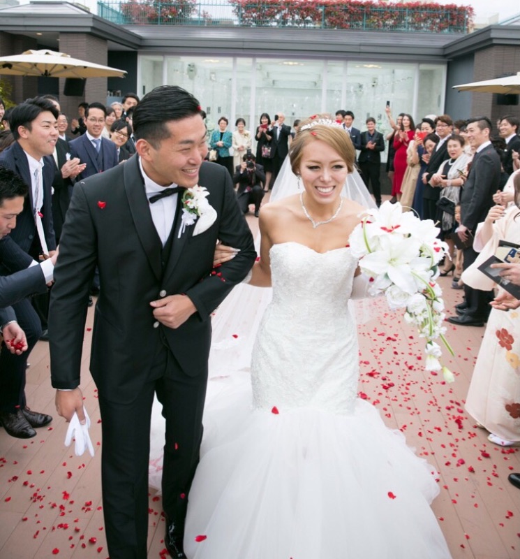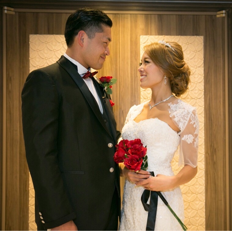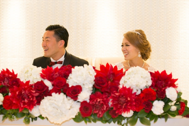 プロポーズの時にもらった「クリスチャン・ルブタン」をテーマにしました。ペーパーアイテムからテーブルコーディネート、ブーケなどもテーマカラーの黒と赤に統一しました。招待状を受け取った瞬間から、ゴージャスでエレガントな雰囲気を感じてもらい、当日まで楽しみにしてもらえるよう工夫しました。また、「ゲストとの時間を最優先する」ことも意識しました。感謝の気持ちを伝える、表す場としての結婚式を作りたかったのでお色直しも中座もなしにして、ずっとゲストの方々と一緒にいられるようにしました。反抗期もひどかった私たちなので、恩師や家族にもきちんと自分たちの思いを伝えられる企画も考えました。この結婚式を機に、大切な人を再確認し改めて大切にしていこうと二人で話し合って決めました。