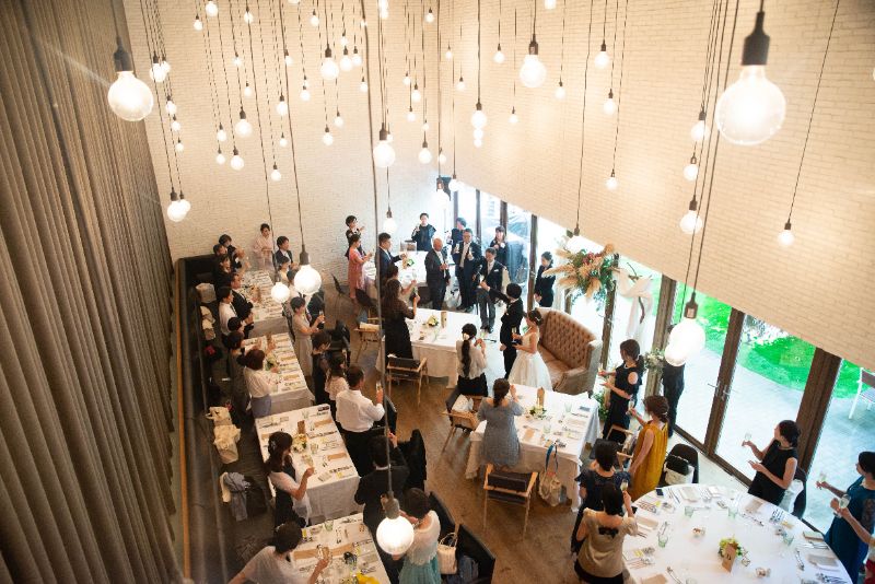 ハワイのガーデンでの家族挙式、東京のレストランでの国内お披露目パーティー