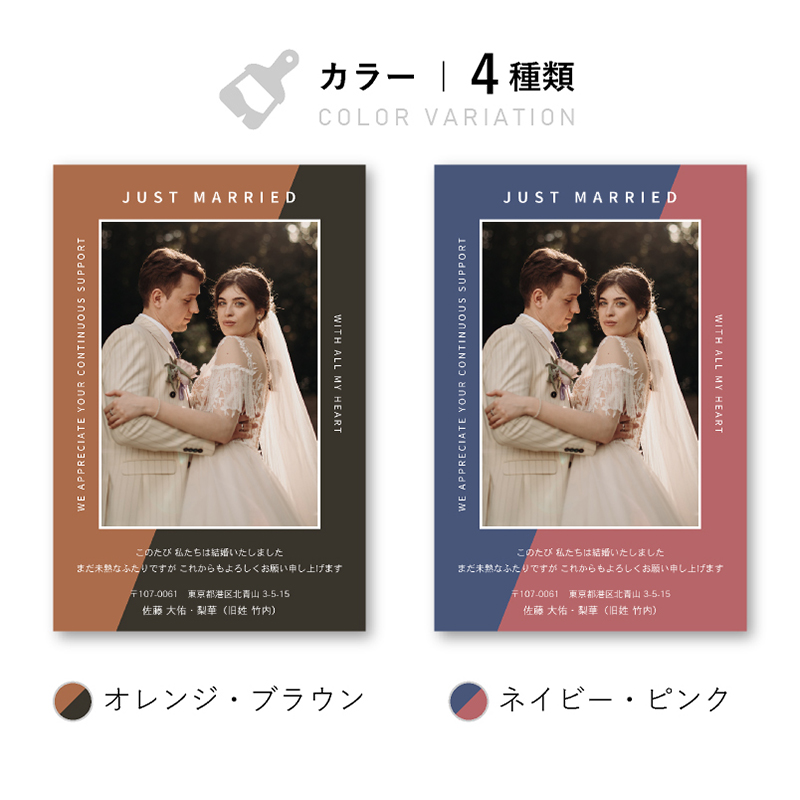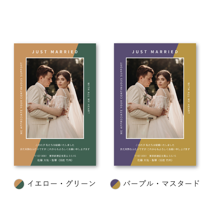 Double colorir -ドゥーブル カラリエ- 結婚報告はがき|結婚報告はがき・年賀状・各種報告はがきならPIARY(ピアリー)