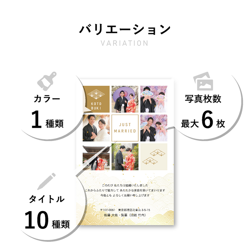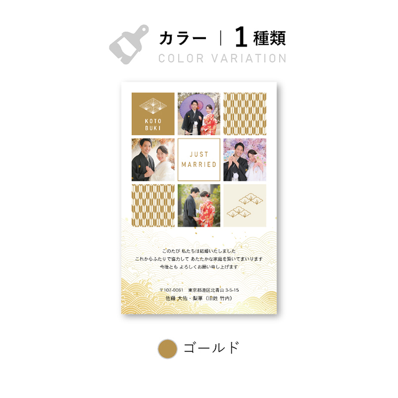 Memoriere Square KOGANE -メモリエール スクエア 黄金- 結婚報告はがき|結婚報告はがき・年賀状・各種報告はがきならPIARY(ピアリー)