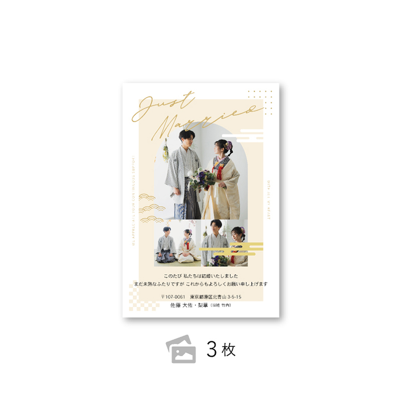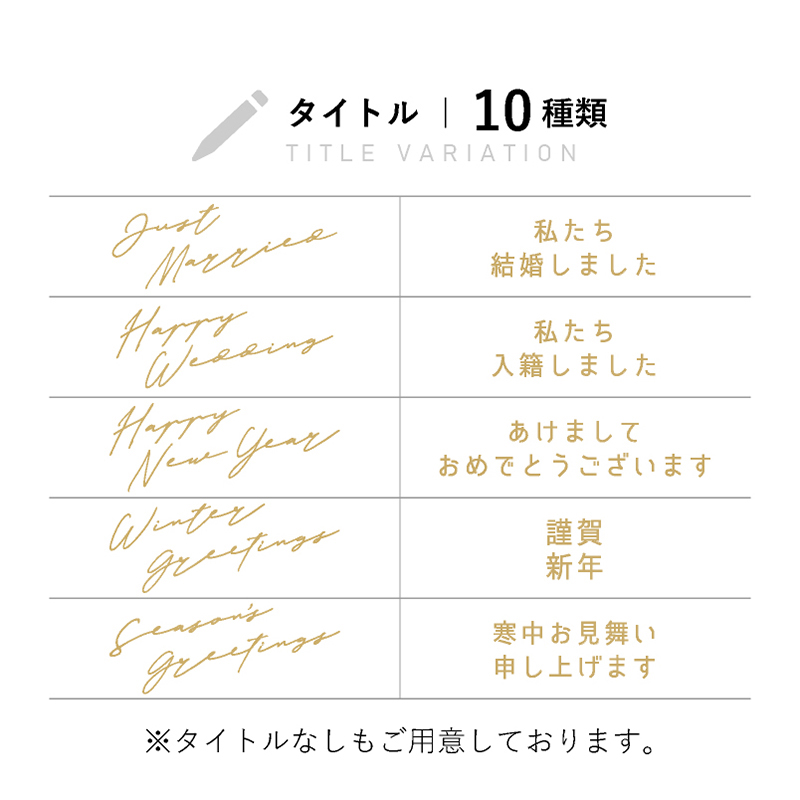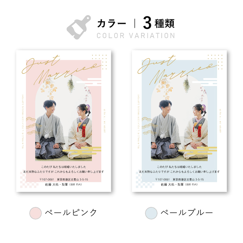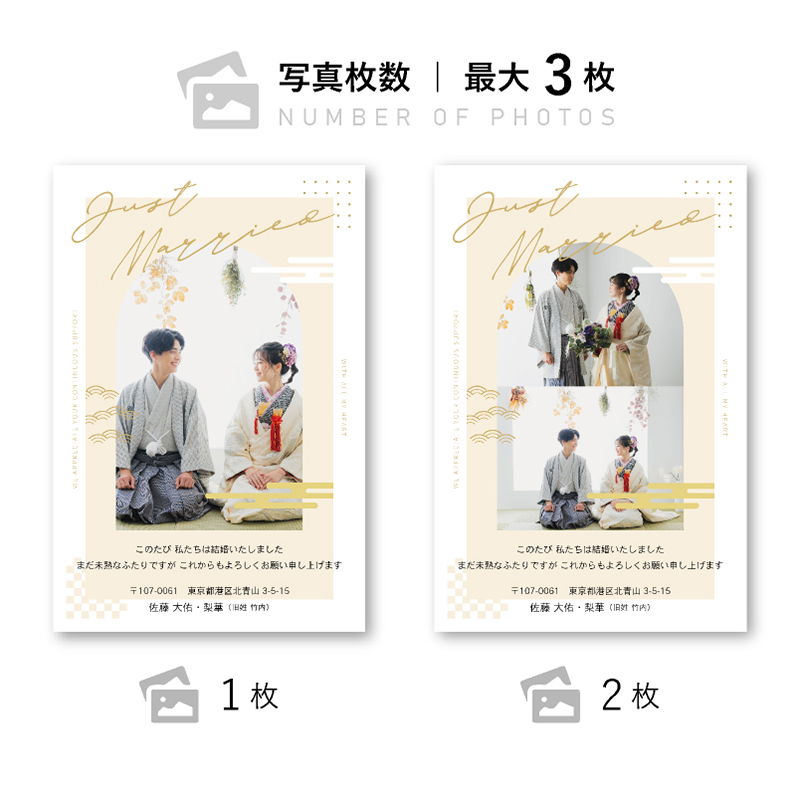 和風でもあり洋風なデザインを取り入れているのが良かった。なので和装、洋装の写真を入れて作りました。仕上がりも早くて助かりました。ありがとうございました_(._.)_