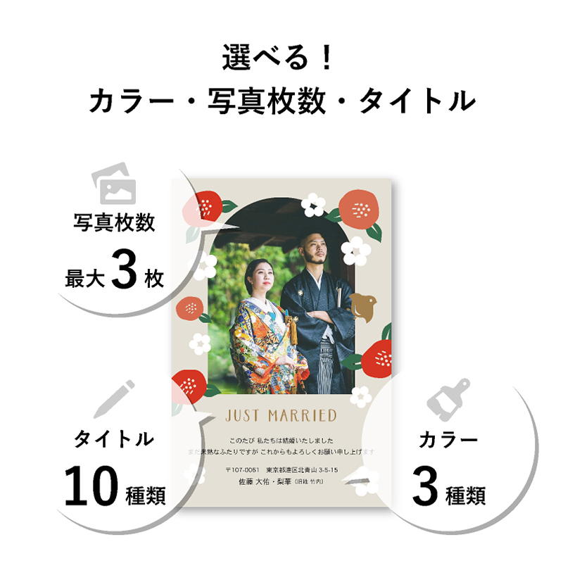 Camellia -カメリア- 結婚報告はがき|結婚報告はがき・年賀状・各種報告はがきならPIARY(ピアリー)