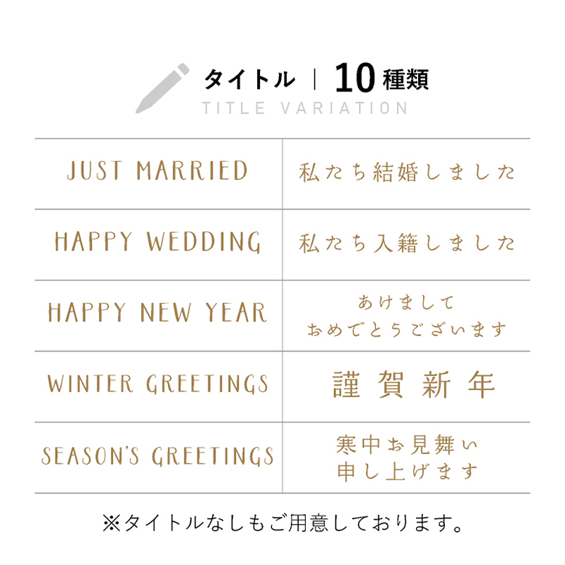 結婚報告はがきを贈る時期とこのデザインがぴったりだったので決めました。親族からお礼の連絡もいただき作って良かったです。