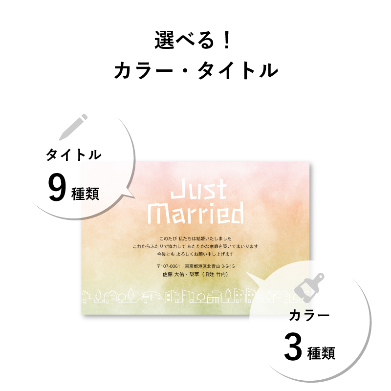 カラーバリエーションやタイトルが選べるからお二人にピッタリのオリジナルな1枚に!
