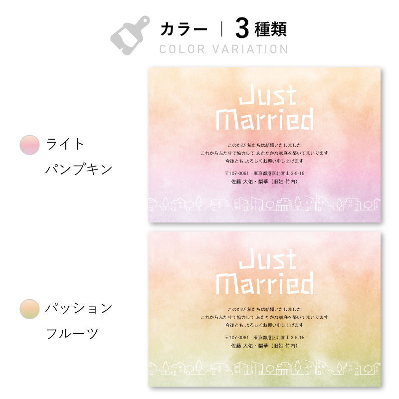 幸せな気持ちを穏やかで優しいカラーのグラデーションで表現したシンプルなデザイン。大切な人とのこれからの生活風景が温かく広がります。