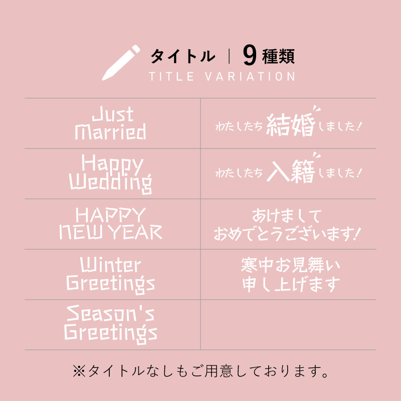 タイトルは9種類の中からお選びいただけます。タイトルなしもご用意しております。