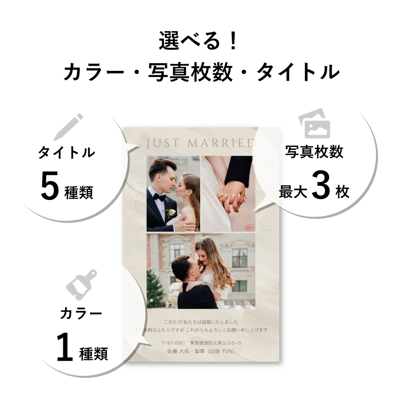 タイトル、写真枚数が選べるからお二人にピッタリのオリジナルな1枚に!